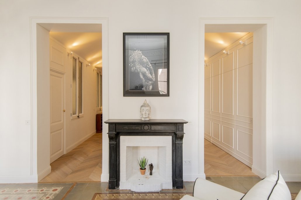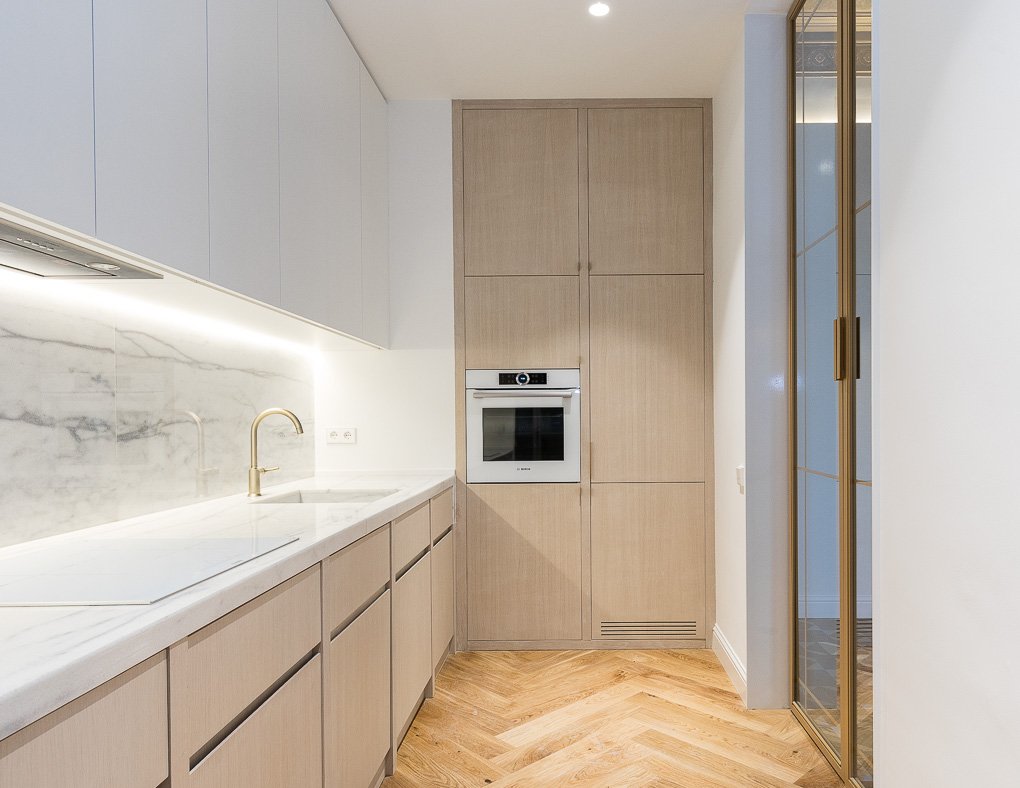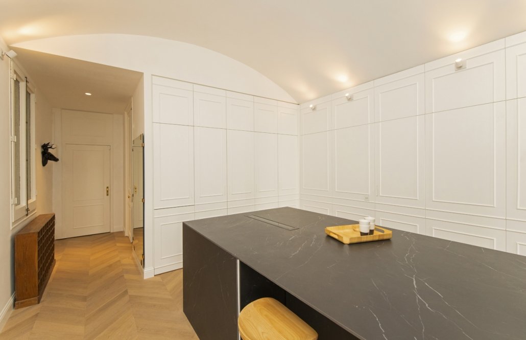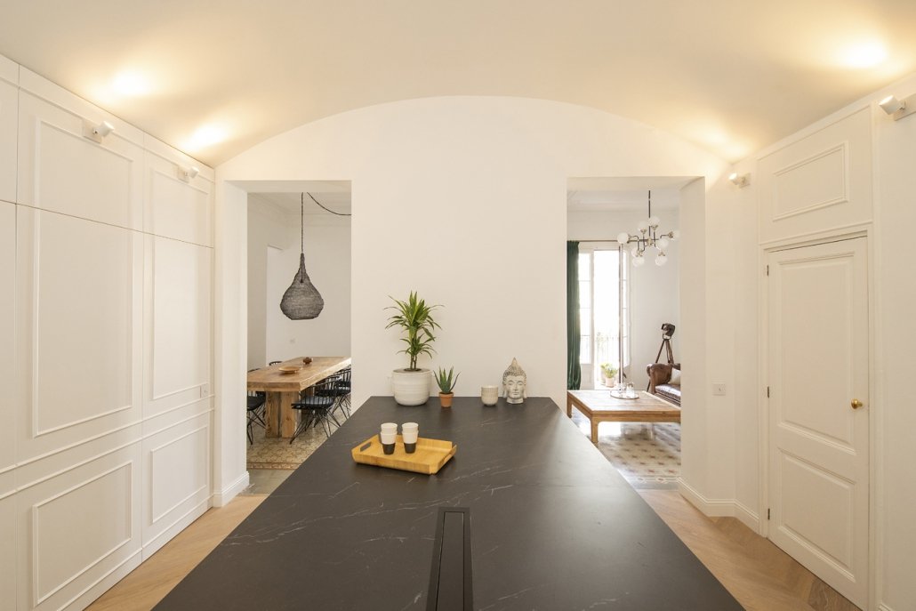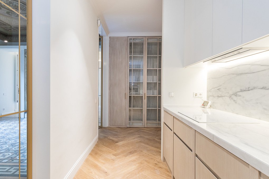 En esta finca modernista del Eixample Derecho, la luz se convierte en protagonista gracias a la creación de verrières doradas que permiten su filtrado hasta el núcleo de la vivienda. La intervención combina el respeto absoluto por la identidad del edificio —conservando molduras, carpinterías y suelos de noia— con soluciones contemporáneas que dotan al espacio de calidez, funcionalidad y sofisticación. Este proyecto es una celebración del patrimonio modernista adaptado a las necesidades de la vida actual.